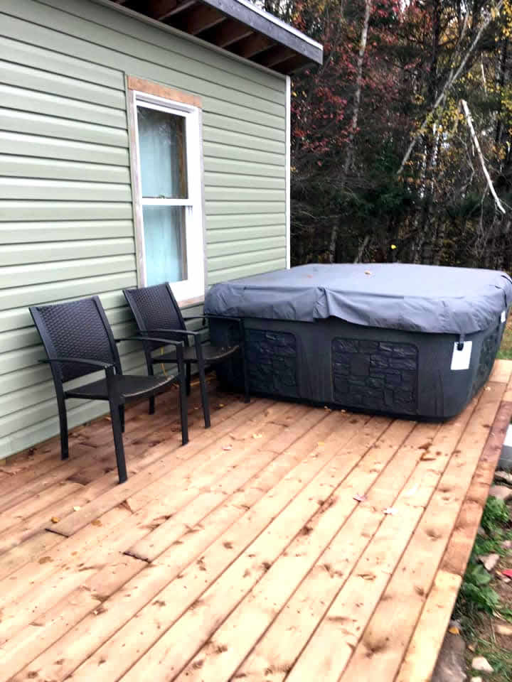 Hot tub, BBQ, kayak and life jackets.