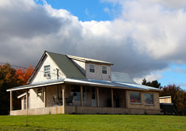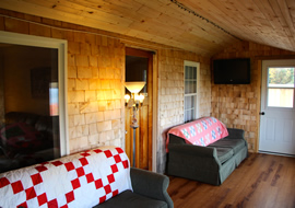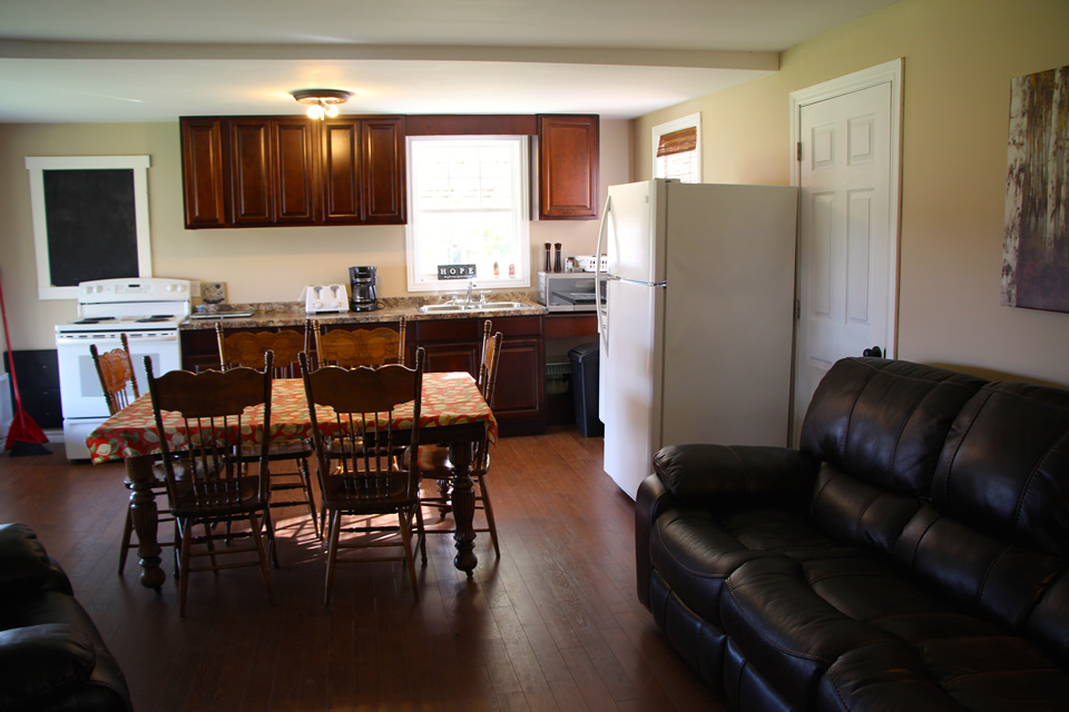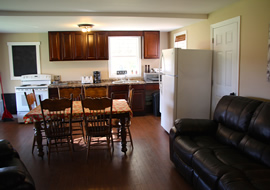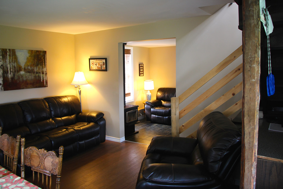 Enjoy our five bedroom chalet that can sleep thirteen adults. Outside, enjoy the beautiful view from the covered deck or enjoy a glass of wine in the seven person hot tub. Wood stove inside for those cozy fires. The cottage contains one and one half baths, dining area, and a fully furnished modern kitchen. Equipped with all that you would need.