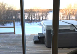 Enjoy our beautiful and spacious guest house. It has six bedrooms that can sleep sixteen people. This cottage enjoys a beautiful view of the lake complete with a seven person hot tub and a private pool which both overlook the water.